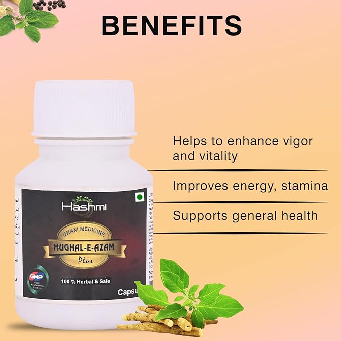Hashmi Mughal-e-Azam Plus Capsule is a potent herbal formulation designed for men to cure spermatorrhea, premature ejaculation and nocturnal emission. The powerful herbs and natural aphrodisiacs of Mughal-e-Azam Plus Capsule help to regain the healthy sexual functions naturally. Ingredients present in Mughal-e-Azam Plus Capsule are natural herbs that do not have any adverse effects and are completely safe without any contraindications as well. The active ingredients of Mughal-e-Azam Plus Capsule energize male reproductive organs and help to prevent spermatorrhea. These herbs act as a nerve tonic and regulate the nerve control of the ejaculation. These ingredients act on both nervous and reproductive organs of the men.