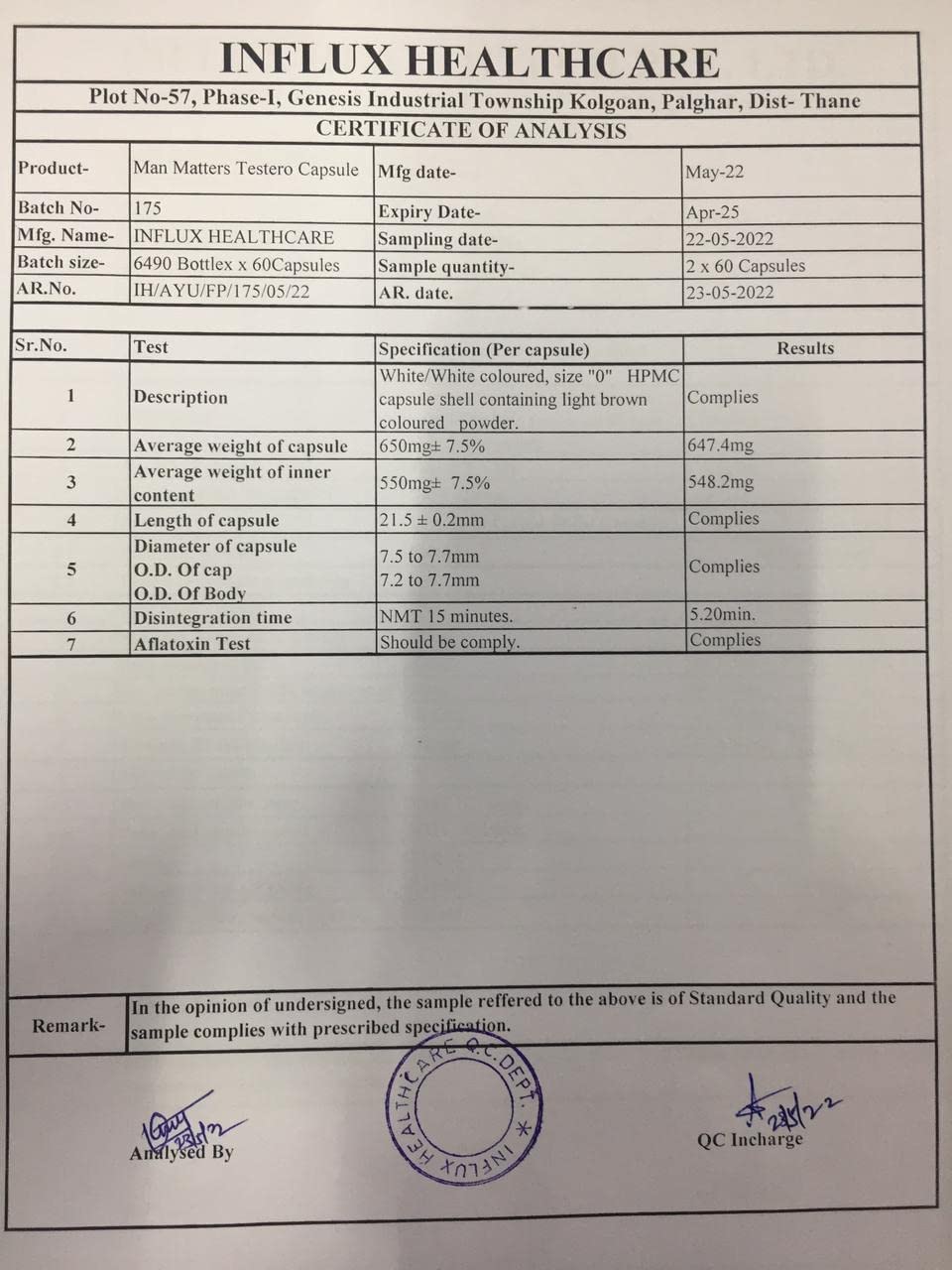 Man Matters Tostero 100% Vegan Ayurvedic capsules Men’s health